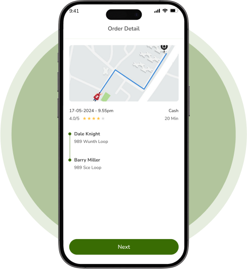 Prompt order notification on delivery partner’s app with complete order details including delivery item and address.