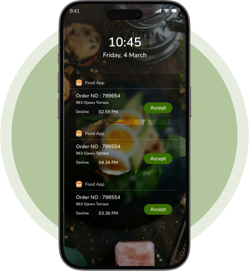 It is specially designed to get instant order notifications with option to view orders and accept or reject according to the available resources.